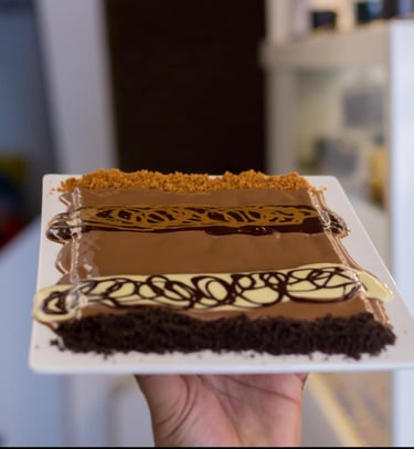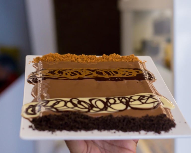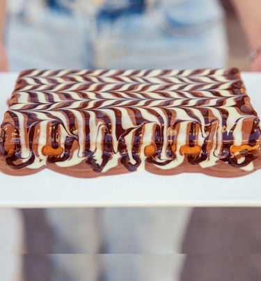 استمتع بتجربة لا تُنسى مع الكريب المميز المليء بثلاث نكهات من الشوكولاتة (البيضاء، والحليب، والداكنة)، ومحشو بقطع أوريو وبسكويت اللوتس.