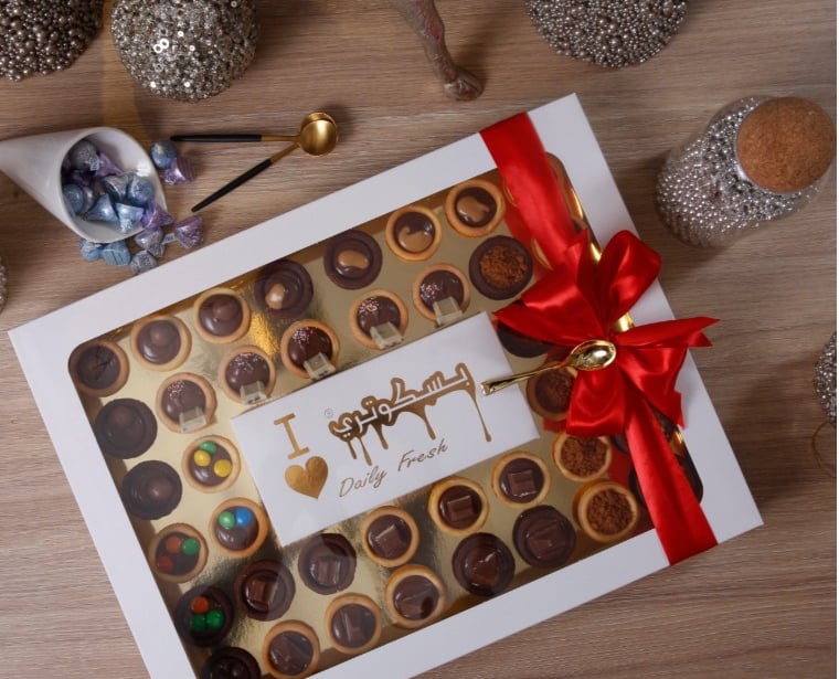 اطلب علبتك الفاخرة التي تحتوي على الميني تارت محشوة بنوتيلا، وشوكولاتة بيضاء، وزبدة اللوتس،
