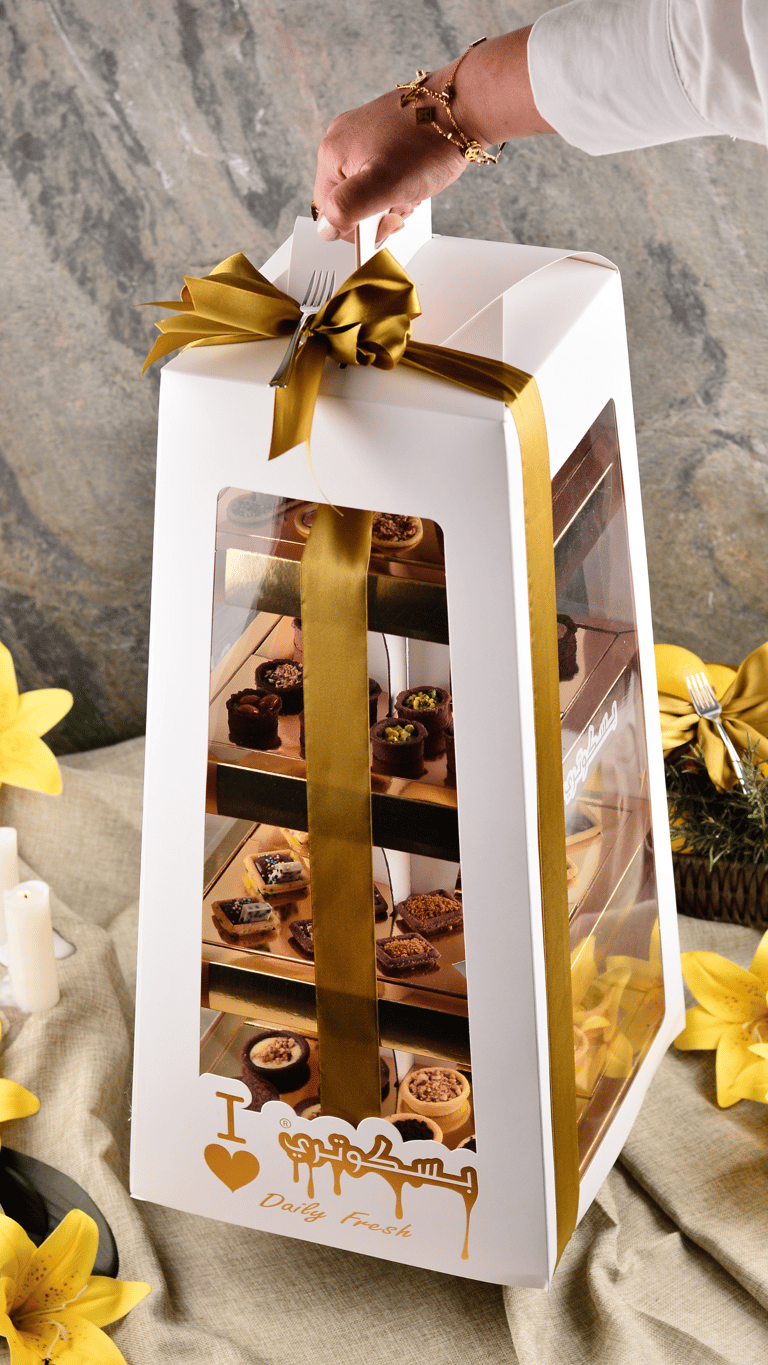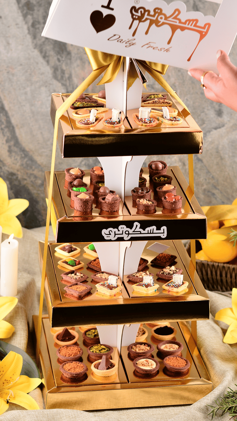 Order your Pyramid Box With 60 pieces Are Filled With Nutella, White, lotus Spread, With 4 layers With 4 Different Shapes of Tarts, Topped With The Most Delicious Chocolate Toppings, Order Pyramid Box Tarts Cause The Taste of all 60 pieces Melts in The Mouth Pyramid Box for People Thinking To Send Luxury Gift for Some One.